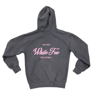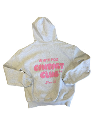 White Fox Grey Hooded Sweatshirt with Pink Graphics and Front Pocket, xs womens