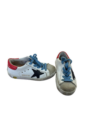 White Fox Marled Grey Hoodie Sweatshirt with Navy Graphics, medium womens