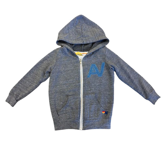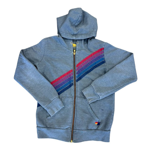 Aviator Nation Grey Zip Up with Blue Stripes, 4 years