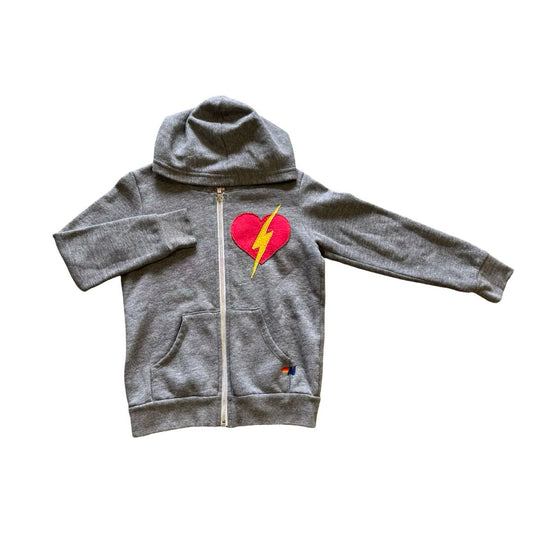 Aviator Nation Grey Zip-Up with Heart and Bolt on Front and Back and small spot on the back, 8 years