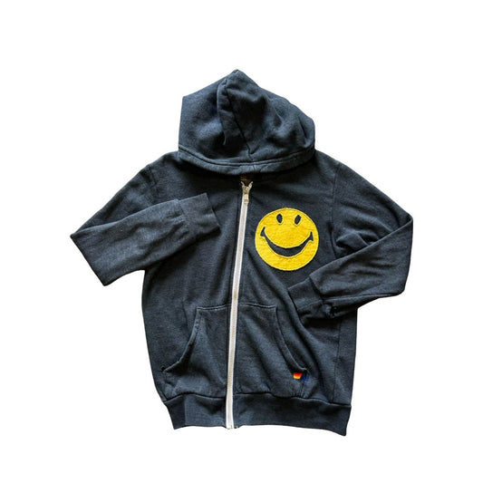 Aviator Nation Black Zip-Up with Smiley Face on Front and Back, 8 years
