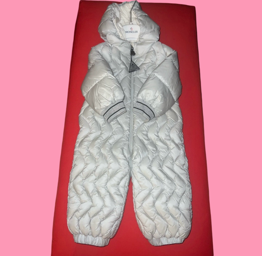 Moncler White one piece snow suit, 12/18M