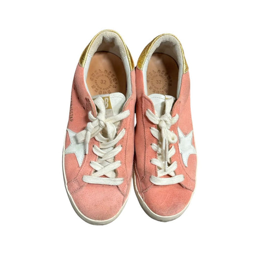 Golden Goose Kids Super Star Low Top Sneakers in Peach Pink Suede with White Star and Gold Heel Tab, eu 32