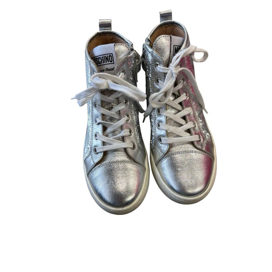 Moschino silver sequin high top runners, euro 31 big kid