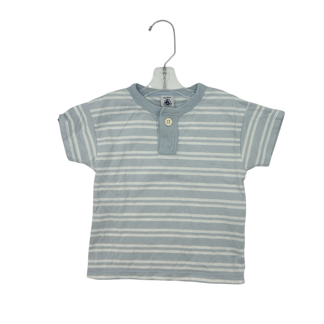 Petit Bateau Striped baby blue and white tshirt, 24 months