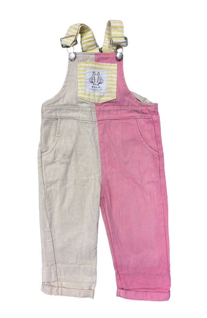 By Billie Beige and Pink Split Overalls, 2 years