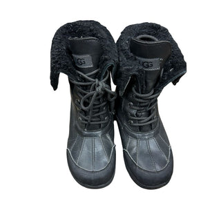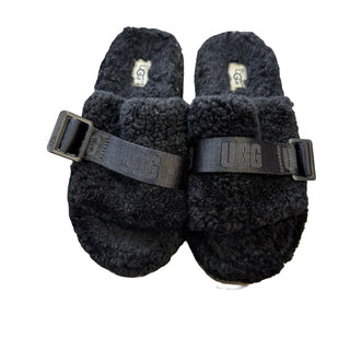Ugg Black Fluffita Slides with Curly Sheepskin and an Adjustable Webbing Strap, 7 big kid