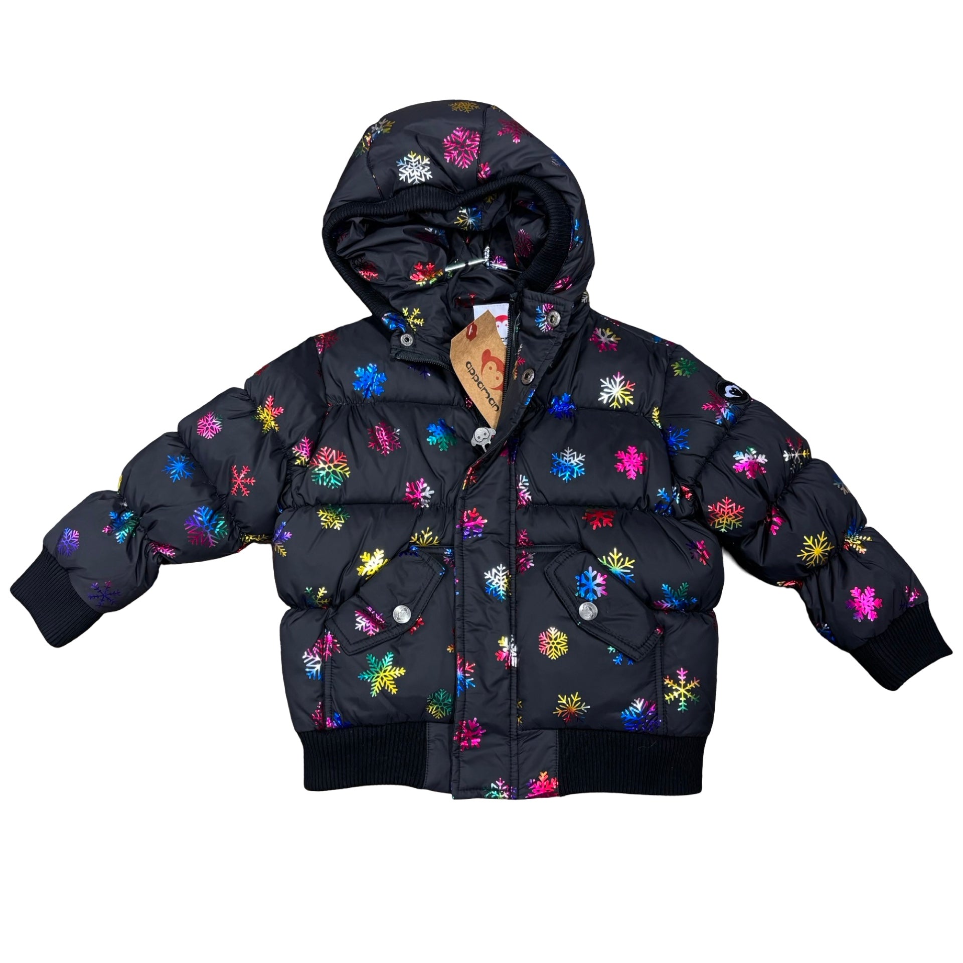 Appaman Sample black puffer w/rainbow snowflakes jacket, 3 years