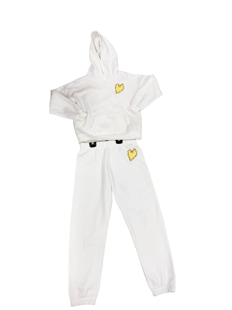 Aqua Girls X Kerri Rosenthal white fleece sweatset with heart, 10-12 years