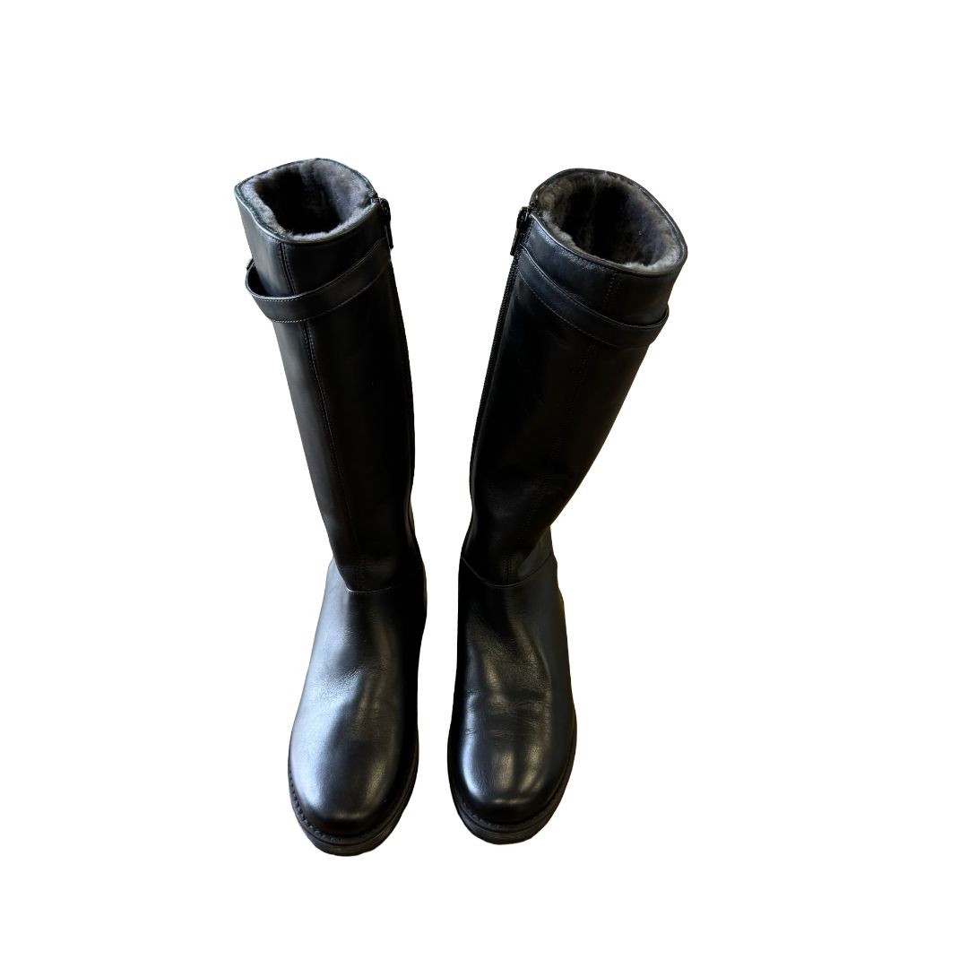 Italian Leather Boots Black High Boots with Fur Lining, eu 33