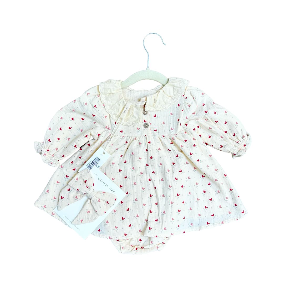 Quincy Mae Callie heart dress with bow new with tags, 3-6 months